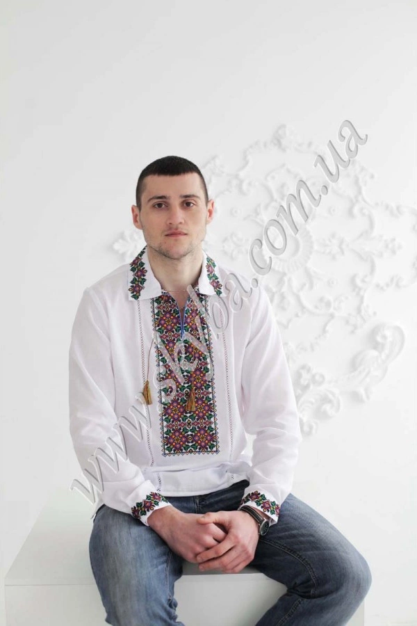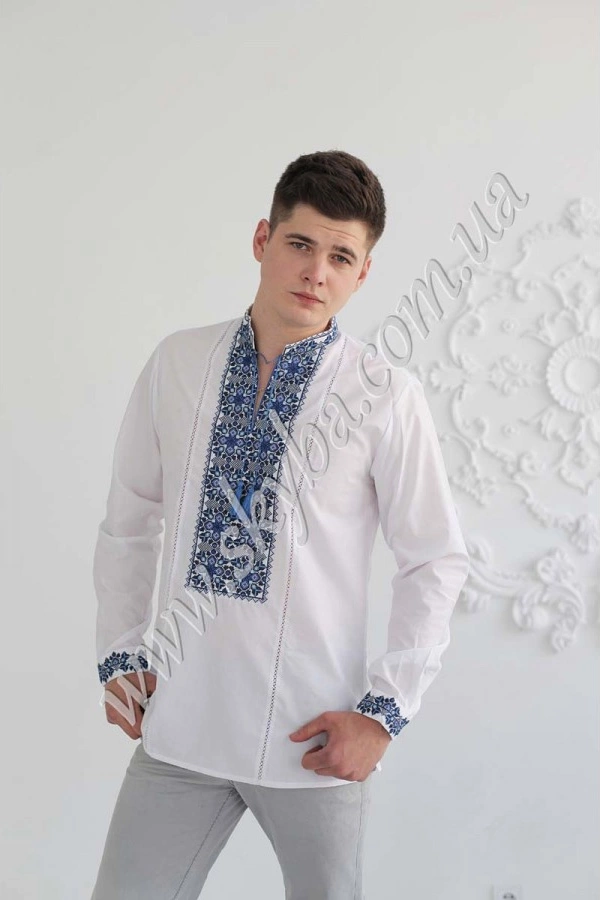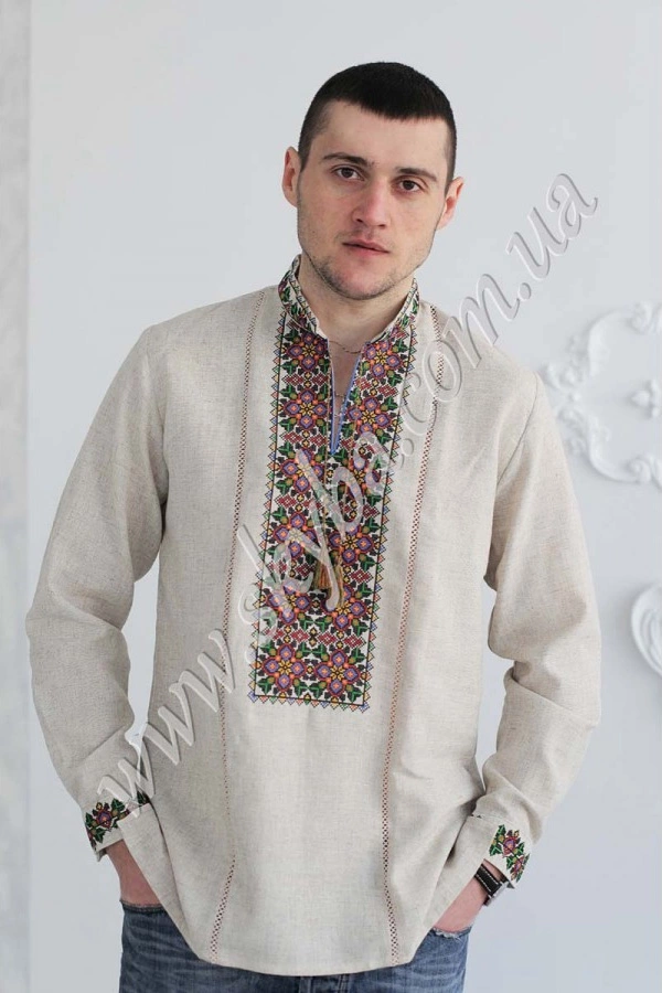 Чоловіча сорочка вишиванка з комірцем-стійкою та довгим рукавом – універсальний варіант на будь-який сезон та для поєднання з різним одягом: брюки, джинси, шорти. Квітковий орнамент на грудях підкреслює оригінальність виробу, а тонка мережка додає неповторності дизайнерському оформленню.