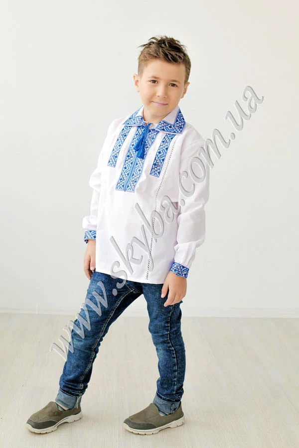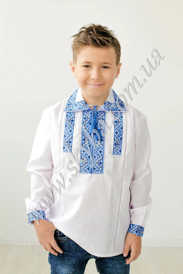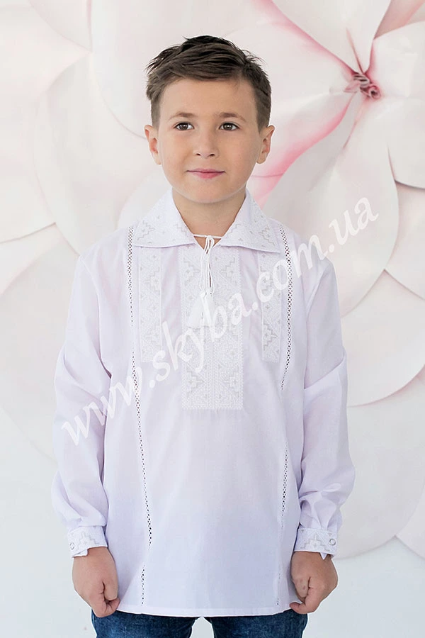 Класична сорочка для хлопчика з багатою дизайнерською вишивкою додає образу оригінальності. Прикрашено виріб тонкою мережкою, розшитими манжетами та накладним комірцем. Придбати таку сорочку Ви можете з доставкою у будь-який регіон України у потрібному розмірі та кольорі.