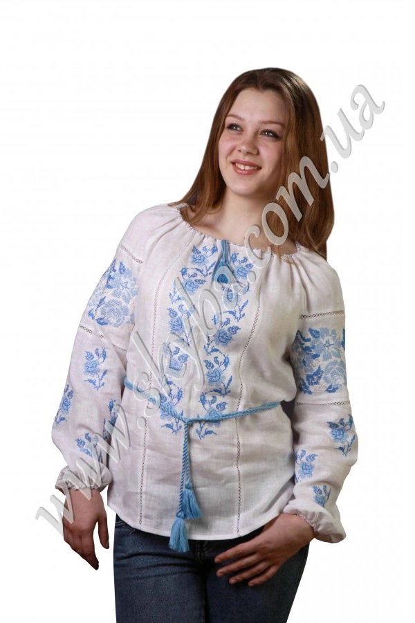 Вишукана жіноча блуза з машинною дизайнерскою вишивкою – справжня знахідка для Вашого стильного гардеробу. Комбінуйте блузу з джинсами, спідницями та брюками. Будь-яка комбінація буде вдалою. Виріб доповнено елегантним паском.