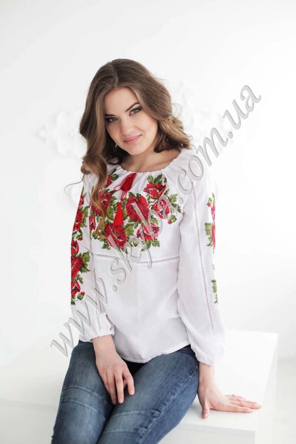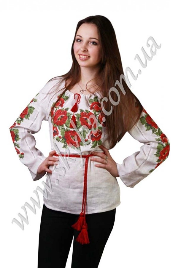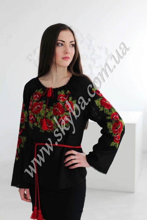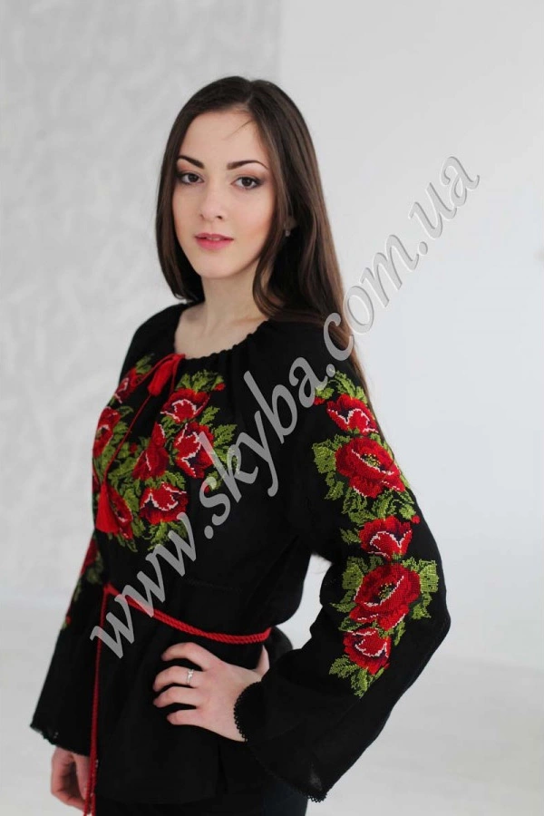 Великий квітковий малюнок вишиванки – розробка дизайнерів інтернет-магазину «Скиба». Обираючи дану модель, Ви віддаєте перевагу оригінальності та жіночності в усіх її проявах. Зона декольте має округлий виріз та обрамлення, яке дозволяє затягувати блузу та експериментувати із формою на свій розсуд.