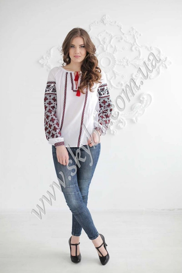 Розкішна вишивка по всій довжині рукавів робить дану жіночу блузу неймовірно оригінально та привабливою. Жіноча блуза із легкого полотна забезпечує шкірі максимальний комфорт. Розріз у зоні комірця та тендітне обрамлення дозволяє регулювати форму верхньої частини виробу на свій розсуд.