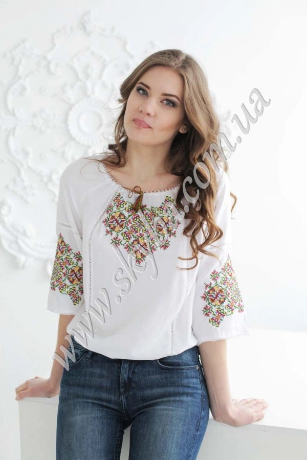 Ніжна та жіночна блуза з вишивкою має бути у гардеробі кожної жінки. Пропонуємо до Вашої уваги стильну вишиванку з оригінальною вишивкою на грудях та рукавах. Композиції виглядають гармонійно та розроблені дизайнерами інтернет-магазину «Скиба» для створення вишуканої моделі, яку Ви можете придбати просто зараз.