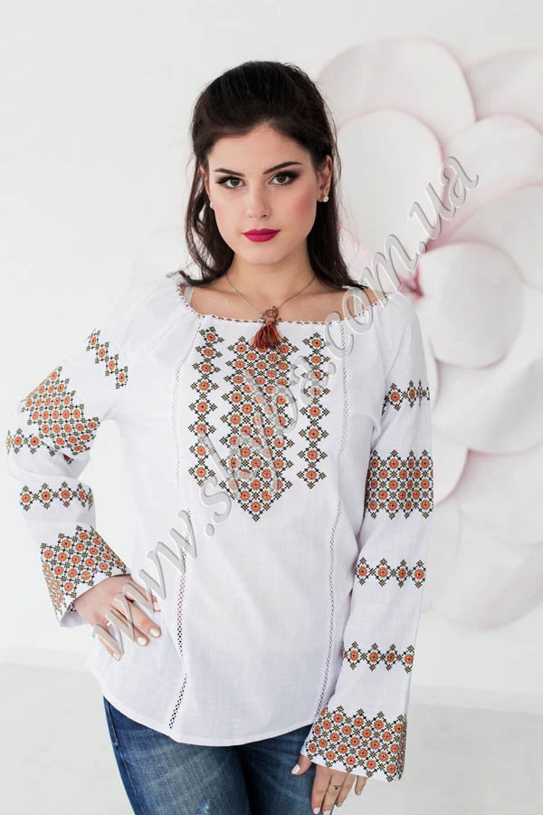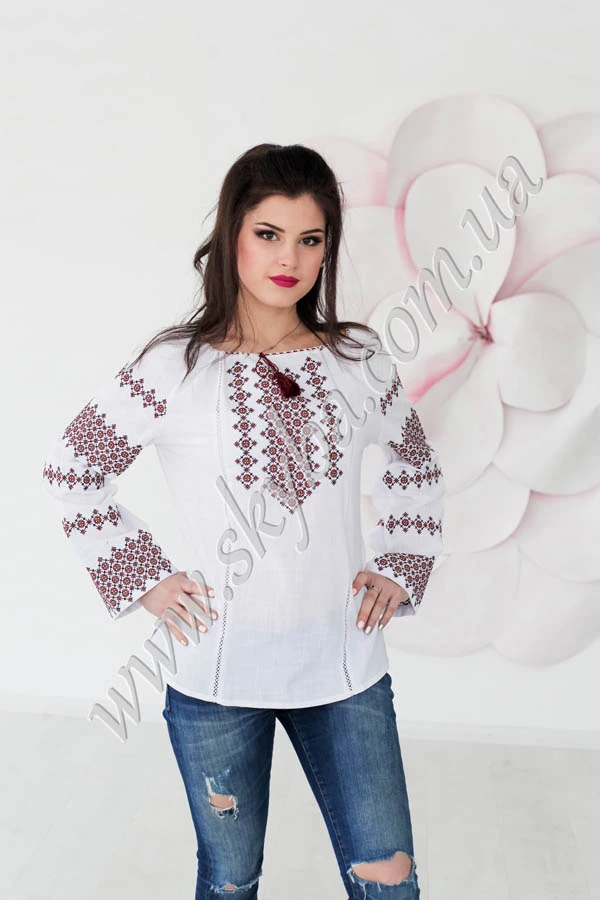 Розкішна вишивка по всій довжині рукавів робить дану жіночу блузу неймовірно оригінально та привабливою. Жіноча блуза із лжатого батиста забезпечує шкірі максимальний комфорт. Тендітне обрамлення дозволяє регулювати форму верхньої частини виробу на свій розсуд.