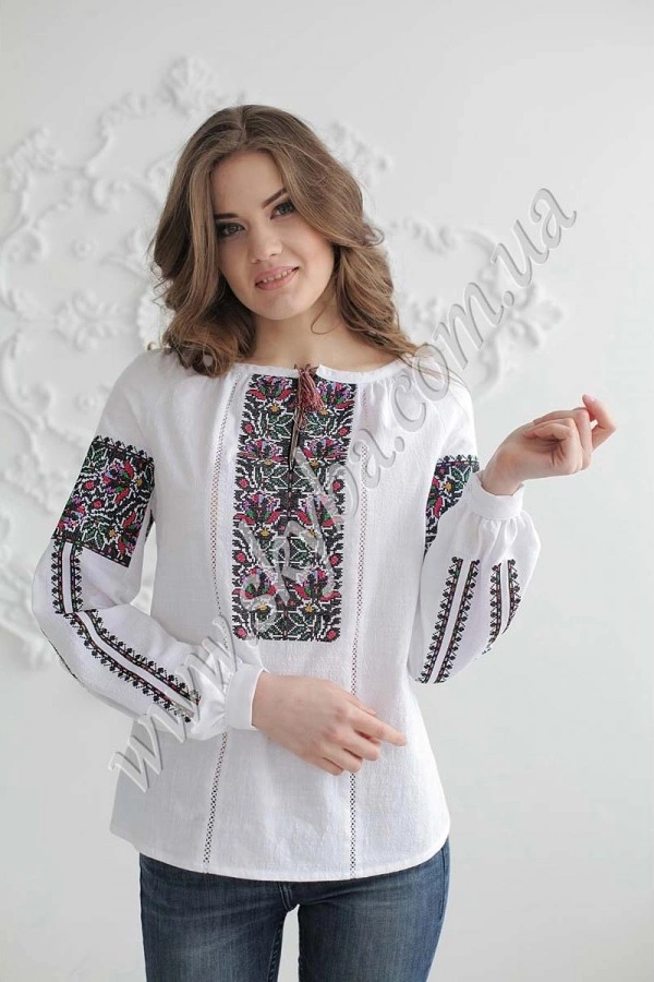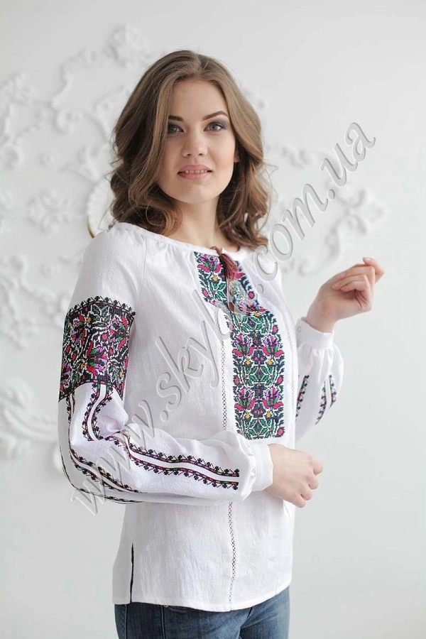 Жіноча вишиванка вільного крою чудово поєднується з джинсами, брюками та спідницями. Вона універсальна, а сам фасон дозволяє створювати стильні комбінування з улюбленими речами. Рукави та передня частина рясно оздобленні дизайнерською ексклюзивною вишивкою, яка додає вишиванці оригінальності, а Вам – жіночності.