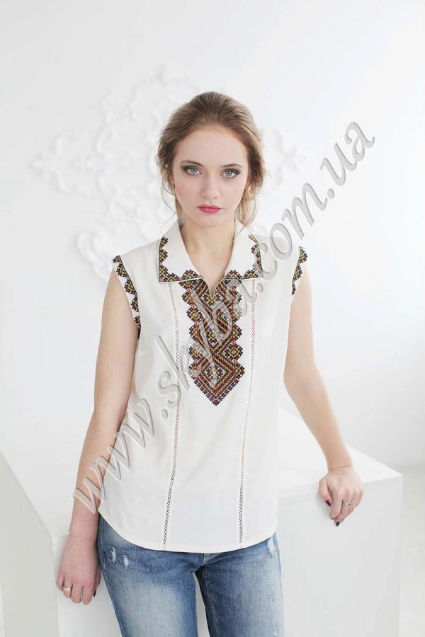 Стильна літня блуза з машинною вишивкою – справжня знахідка, якщо Ви віддаєте перевагу комфорту та оригінальності зовнішнього вигляду. Малюнок розроблено дизайнерами інтернет-магазину «Скиба», а наявність обробки коміру та рукавів лише додає яскравості даній моделі. На Ваш вибір: блуза з вишивкою зі штапелю, або жатого батисту.